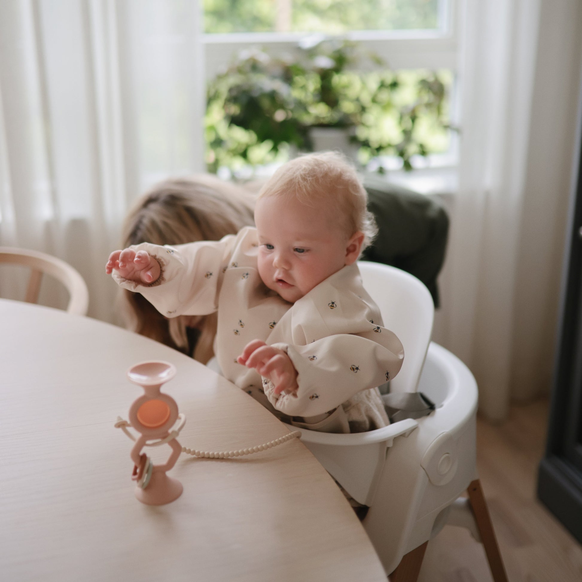 Mushie's adjustable silicone straps keep baby essentials secure so parents and littles on-the-go can enjoy more peaceful outings. Help prevent dropped toys, pacifiers, and sippy cups with these versatile straps designed to attach to strollers, high chairs, car seats, and more. An adjustable closure on each end ensures a snug fit for various items, while the durable non-toxic silicone material withstands daily wear and tear.