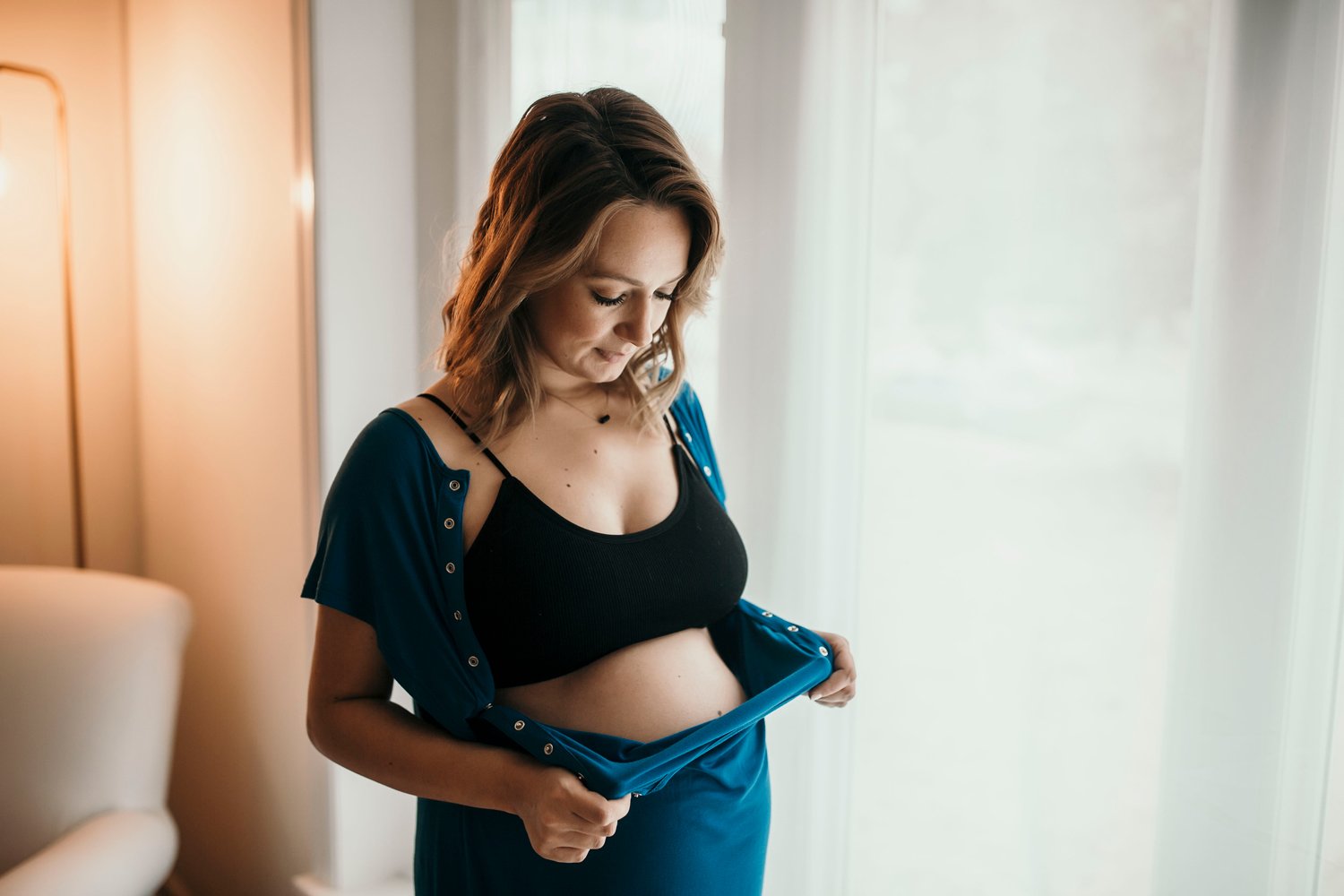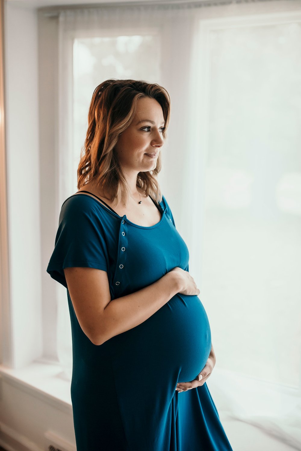 The buttery soft fabric stretches as a comfortable nightgown option for your growing belly at every stage. The easy-to-use snaps on the shoulder make it easy to breastfeed in the middle of the night. Honestly, you might never wear anything else as they are just that comfy!