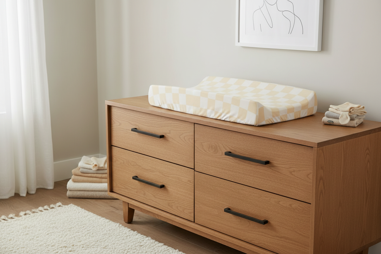 Our Butter Yellow Checkered Changing Pad Covers are made from stretchy fabric that will bring a refresh to your nursery. The breathable and soft sheet will give your little one comfortable diaper changes.