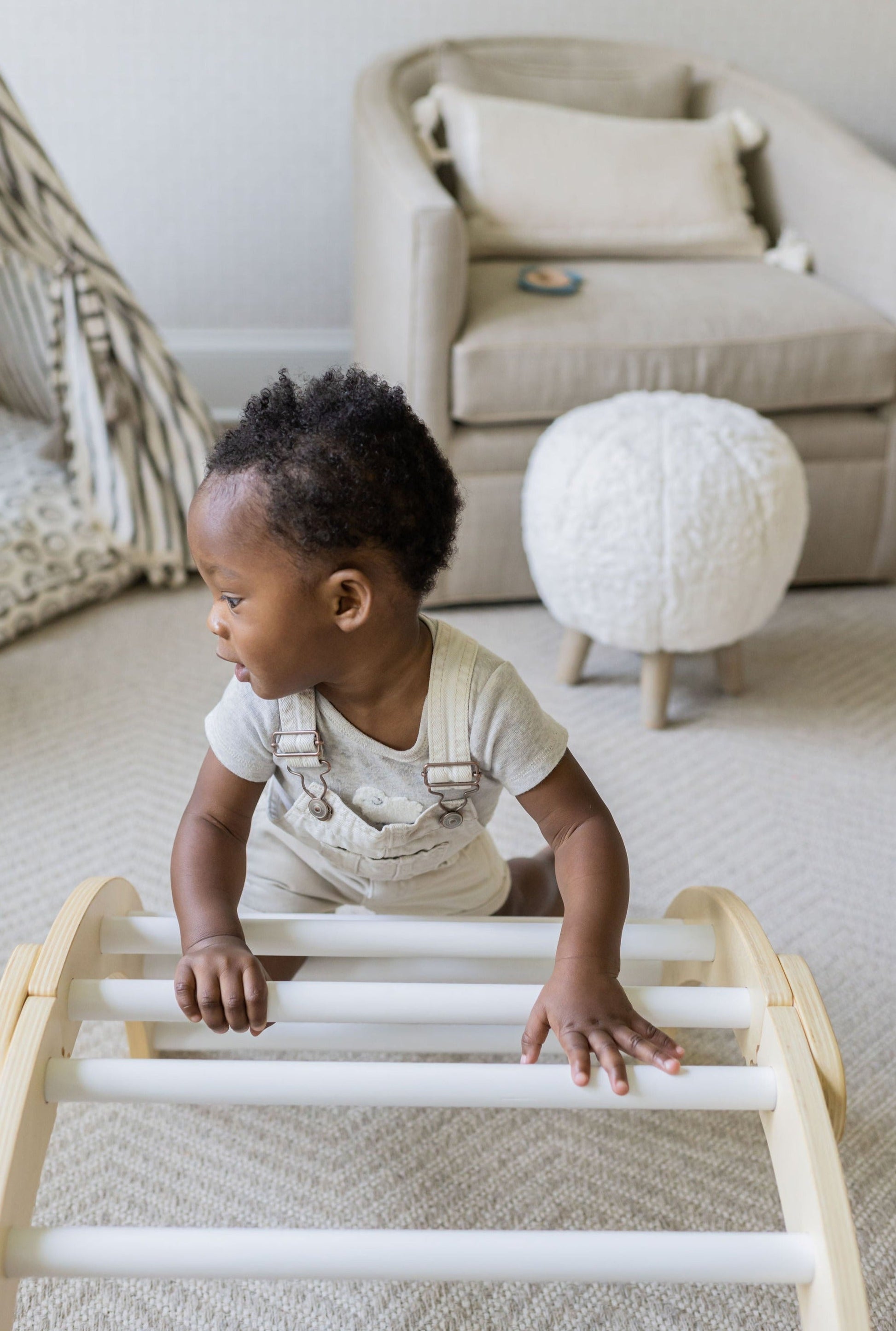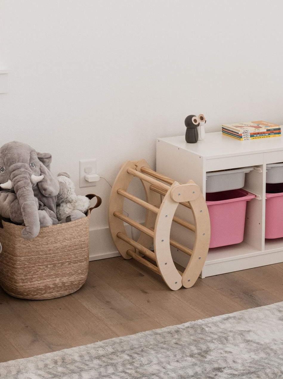 This foldable, Montessori climbing arch is designed to grow with your child and enhance their motor skills, balance control, and creativity. Active and open-ended play is fundamental for the development of early childhood. This Pikler-inspired arch is designed for climbing, rocking, resting, hiding, balancing, and playing. From forts and obstacle courses to lemonade stands and doll cradles - the creative play options are endless.