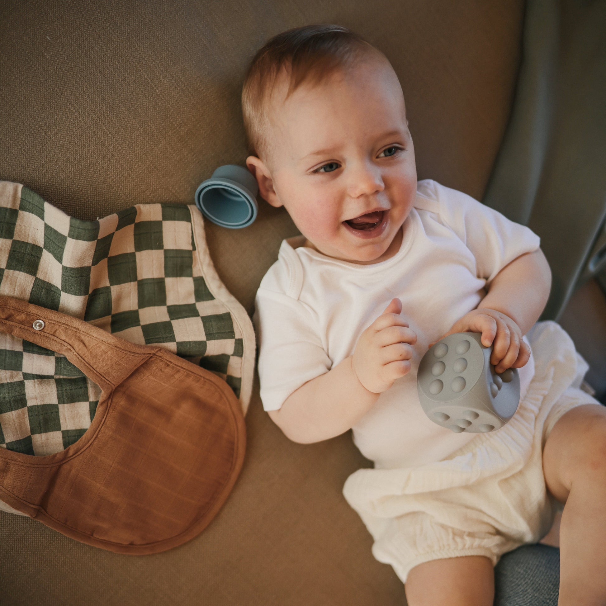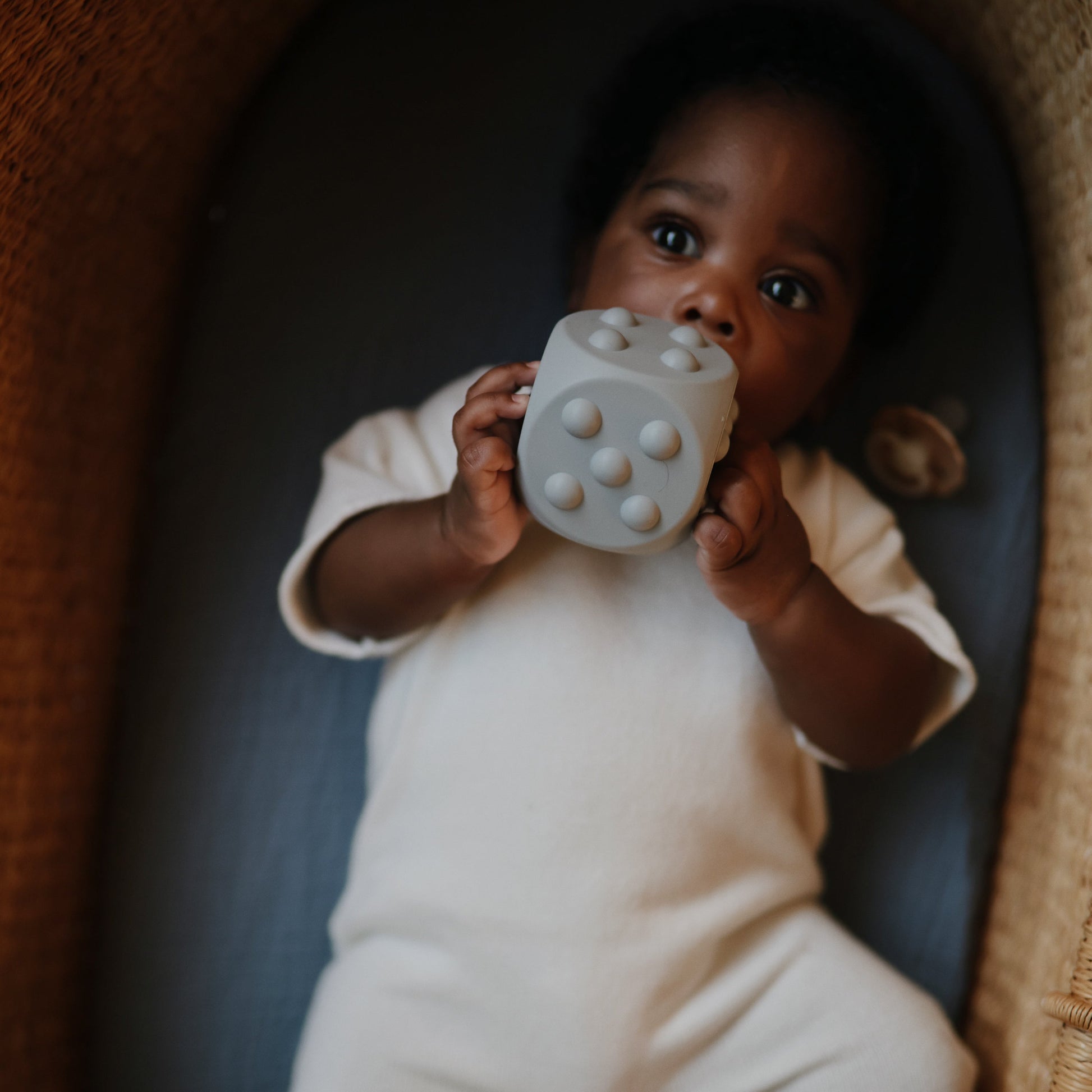 Combine learning and play with the mushie Dice Press Toy. Made with 100% food grade silicone, the pair of dice features poppable dots on each face, encouraging fine motor skill development while also providing a tool for teaching counting and simple arithmetic. A sensory toy and STEM toy all in one, this set of two was developed to keep little hands and minds busy.