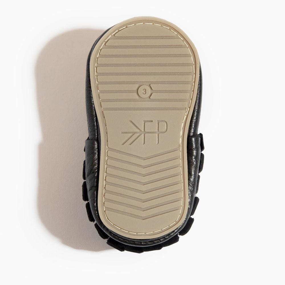 Made by hand from premium leather, these shoes feature a classic Moccasin design with fringe detail. With an elasticized ankle for easy wear, they guarantee gentle support and healthy foot development for your little one.