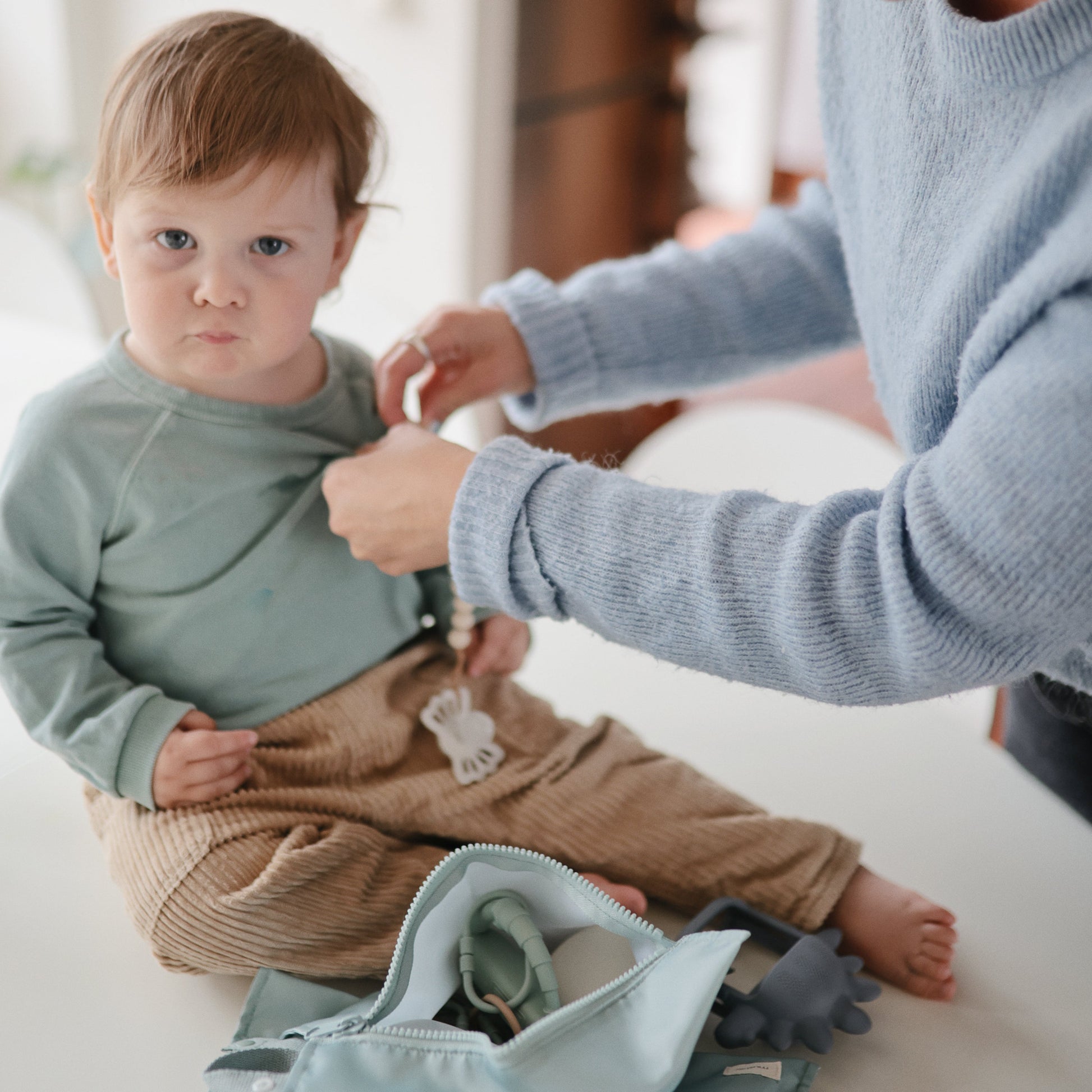 The FRIGG Baby’s First Pacifier set features 4 popular FRIGG styles with different nipple materials and shapes, so parents can easily try out various options to find out which works best for their baby's unique needs. With a variety all in one convenient set, parents can confidently discover their little one’s favorite, making those first soothing moments a little easier. Each pacifier is thoughtfully designed and made in Denmark with comfort and safety in mind.
