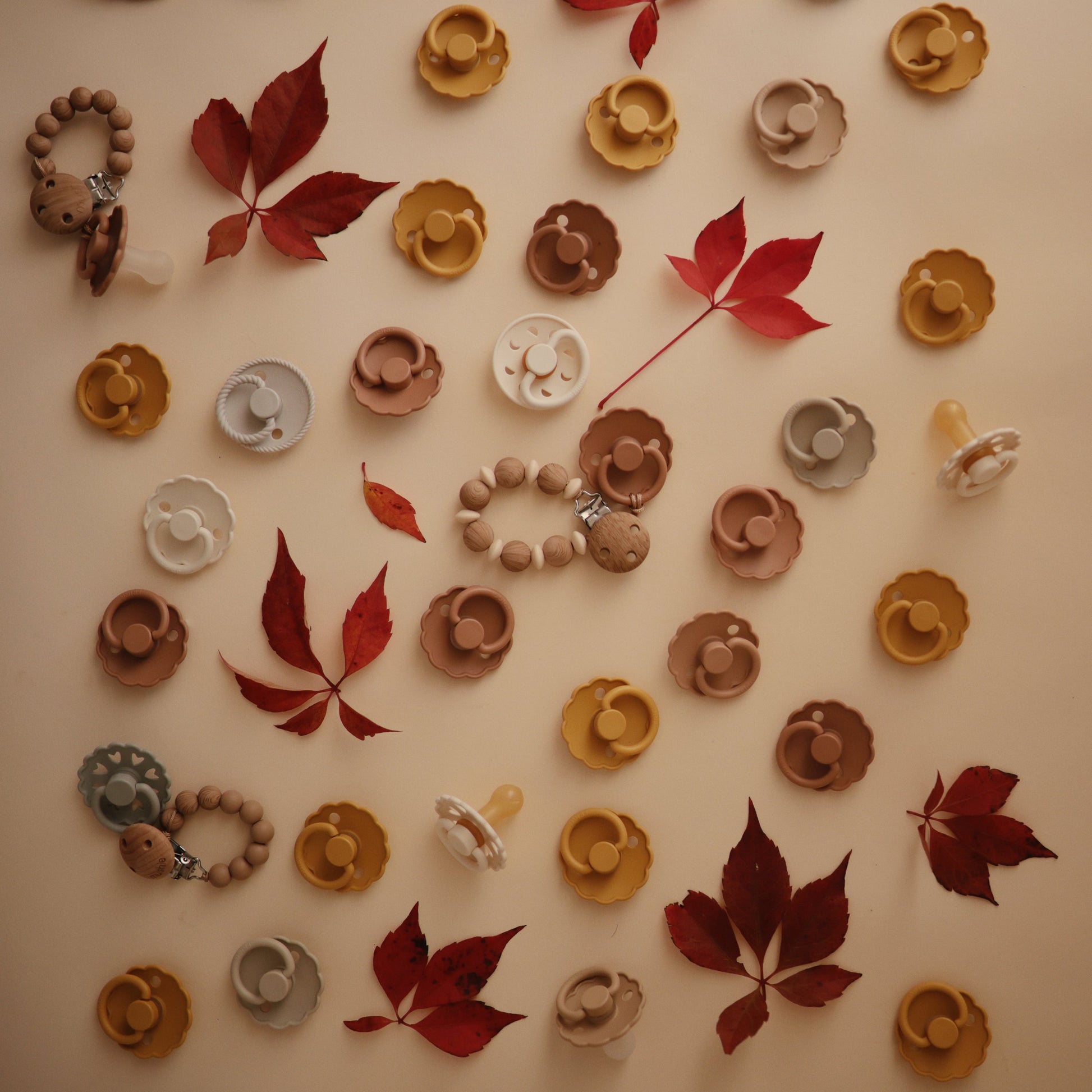 The FRIGG line of daisy silicone pacifiers with improved SilkySoft™ nipple and an innovative Click-lock System has been thoughtfully designed for your baby's comfort. The outward curve keeps the pacifier off their delicate skin, while features like air holes and a security handle ensure your baby stays safe. Available in a range of soft colors, FRIGG pacifiers make a beautiful addition to your collection of baby essentials.