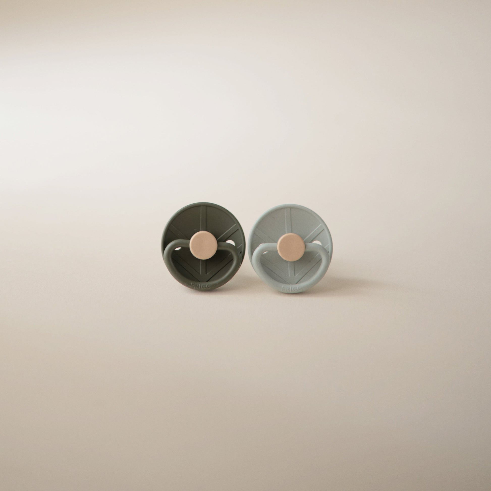 The FRIGG line of Little Viking silicone pacifiers is inspired by Norse mythology, including the Norse Goddess Frigg who is the inspiration behind the FRIGG brand. FRIGG's silicone pacifiers feature an improved SilkySoft™ nipple and innovative Click-lock System. The outward curve keeps the pacifier off their delicate skin, while features like air holes and a security handle ensure your baby stays safe. Available in a range of soft colors, FRIGG pacifiers make a beautiful addition to your collection of baby essentials.