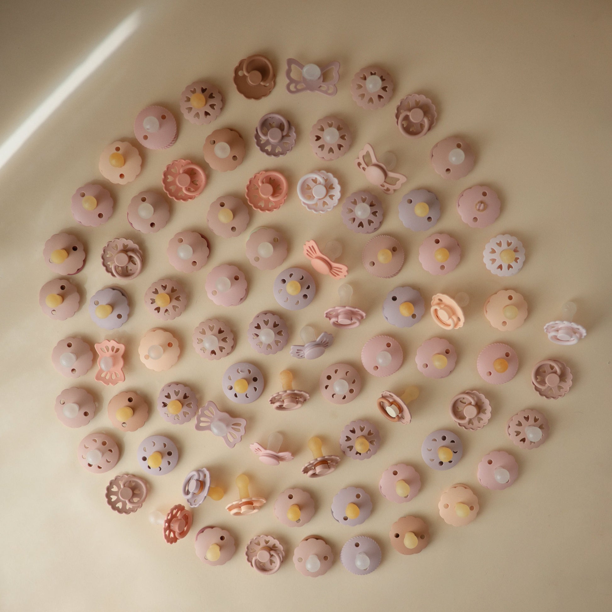 The FRIGG Lucky silicone pacifiers are thoughtfully designed for your baby's comfort and safety with an improved SilkySoft™ nipple and innovative Click-lock system. FRIGG Lucky is inspired by the rare four-leaf clover. The shield mimics the leaves of a clover and has large air holes for added safety. FRIGG Lucky is symmetrical with a slightly flattened teardrop-shaped nipple. The symmetrical design always fits correctly in baby’s mouth, regardless if it is facing up or down. FRIGG Lucky pacifiers have a flatter neck to minimize pressure on the palate and gums, which reduces the risk of crooked teeth and supports proper development of baby’s mouth and jaw.
