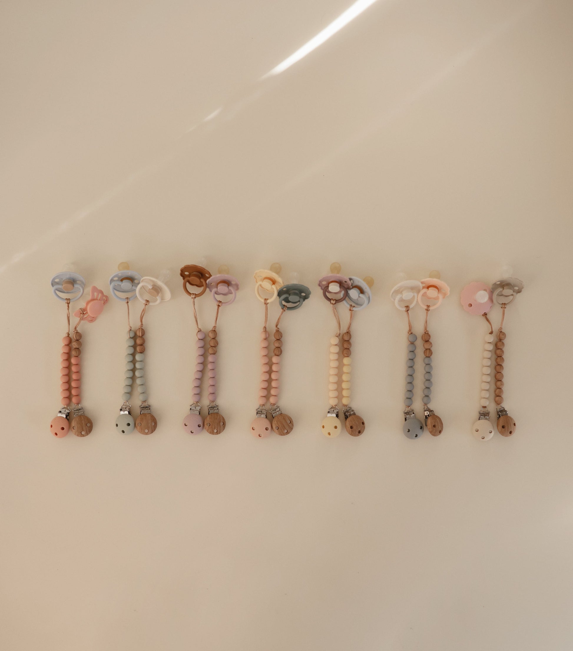 The FRIGG line of natural rubber pacifiers have been thoughtfully designed for your baby's comfort. The outward curve keeps the pacifier off their delicate skin, while features like air holes and a security handle ensure your baby stays safe. The set includes a variety of four pacifiers in a curated palette—perfect for rotating through the week or gifting to a new parent.