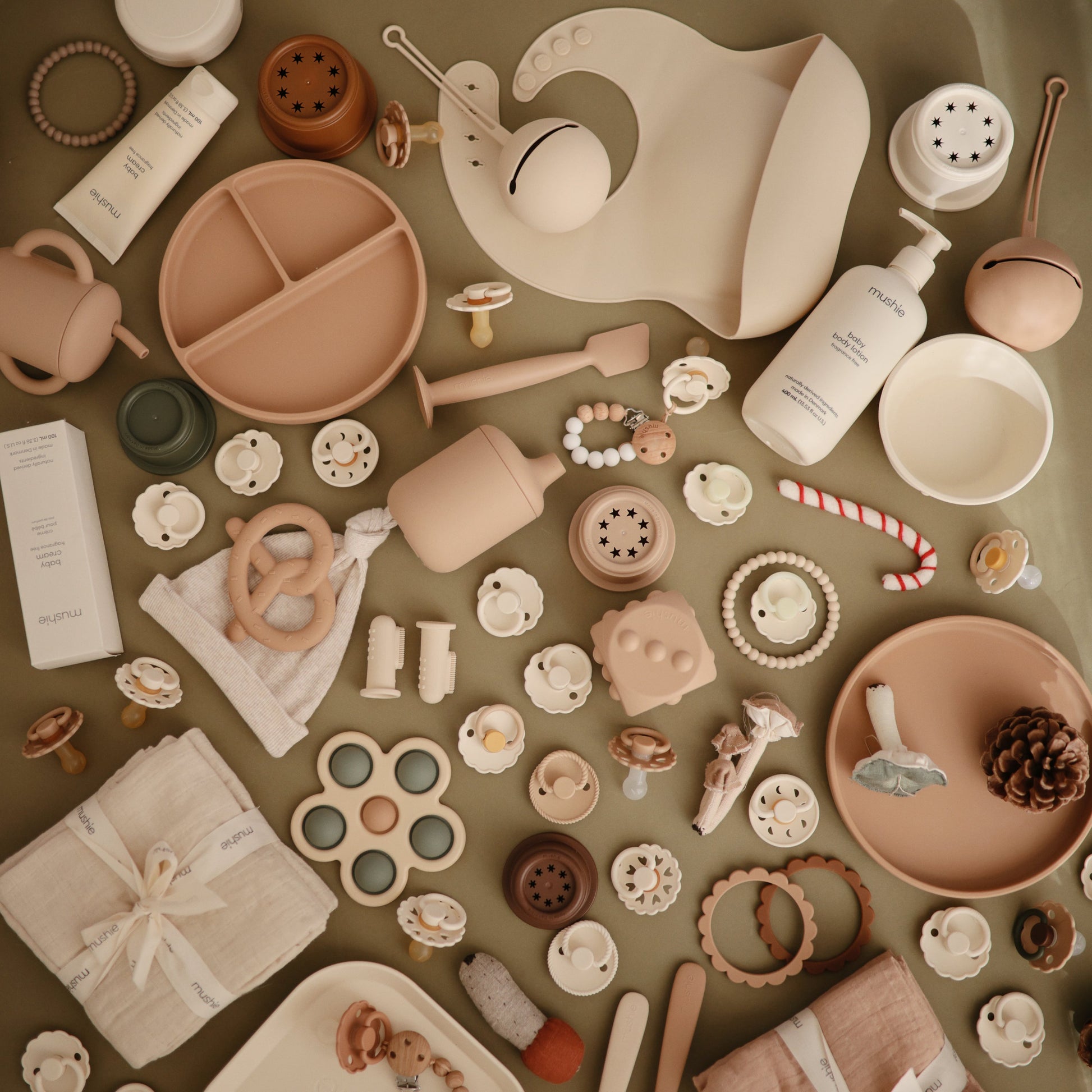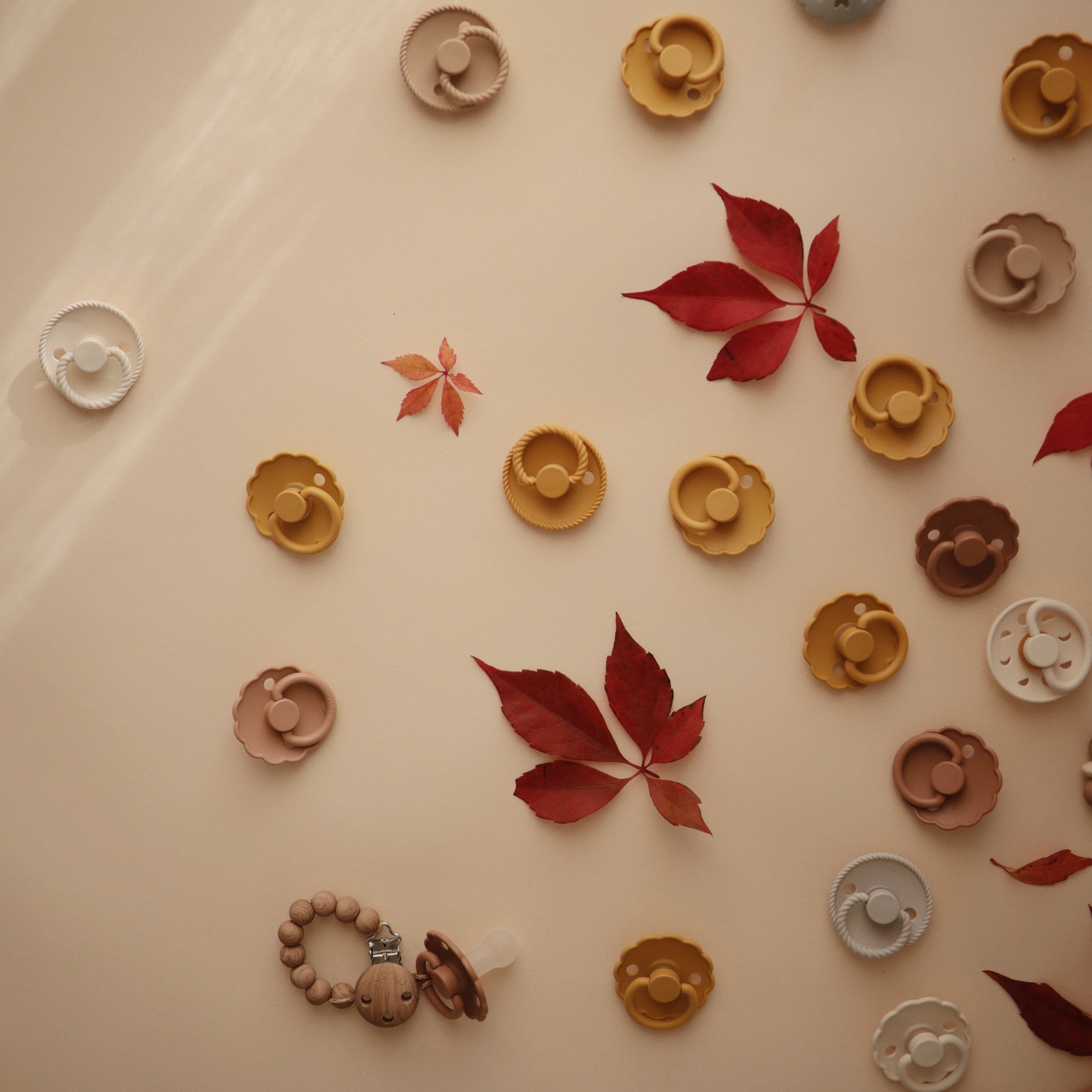 The FRIGG line of rope rubber pacifiers is thoughtfully designed for your baby's comfort and features an entwined rope that surrounds the pacifier shield. The outward curve keeps the pacifier off delicate skin, while air holes and a security handle ensure your baby stays safe. Available in a range of soft colors, FRIGG pacifiers make a beautiful addition to your collection of baby essentials.