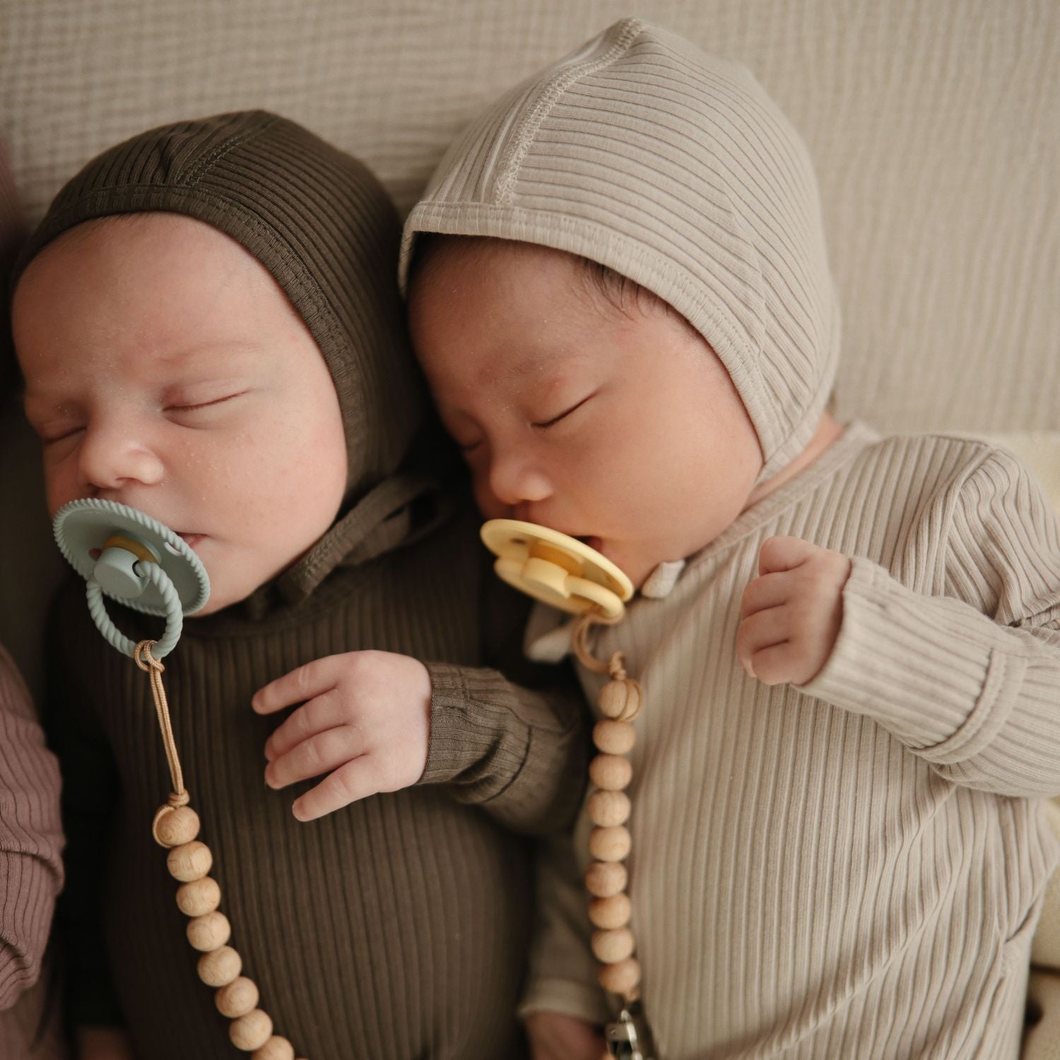 The FRIGG line of silicone pacifiers have been thoughtfully designed for your baby's comfort. The outward curve keeps the pacifier off their delicate skin, while features like air holes and a security handle ensure your baby stays safe. The set includes a variety of four pacifiers in a curated palette—perfect for rotating through the week or gifting to a new parent.