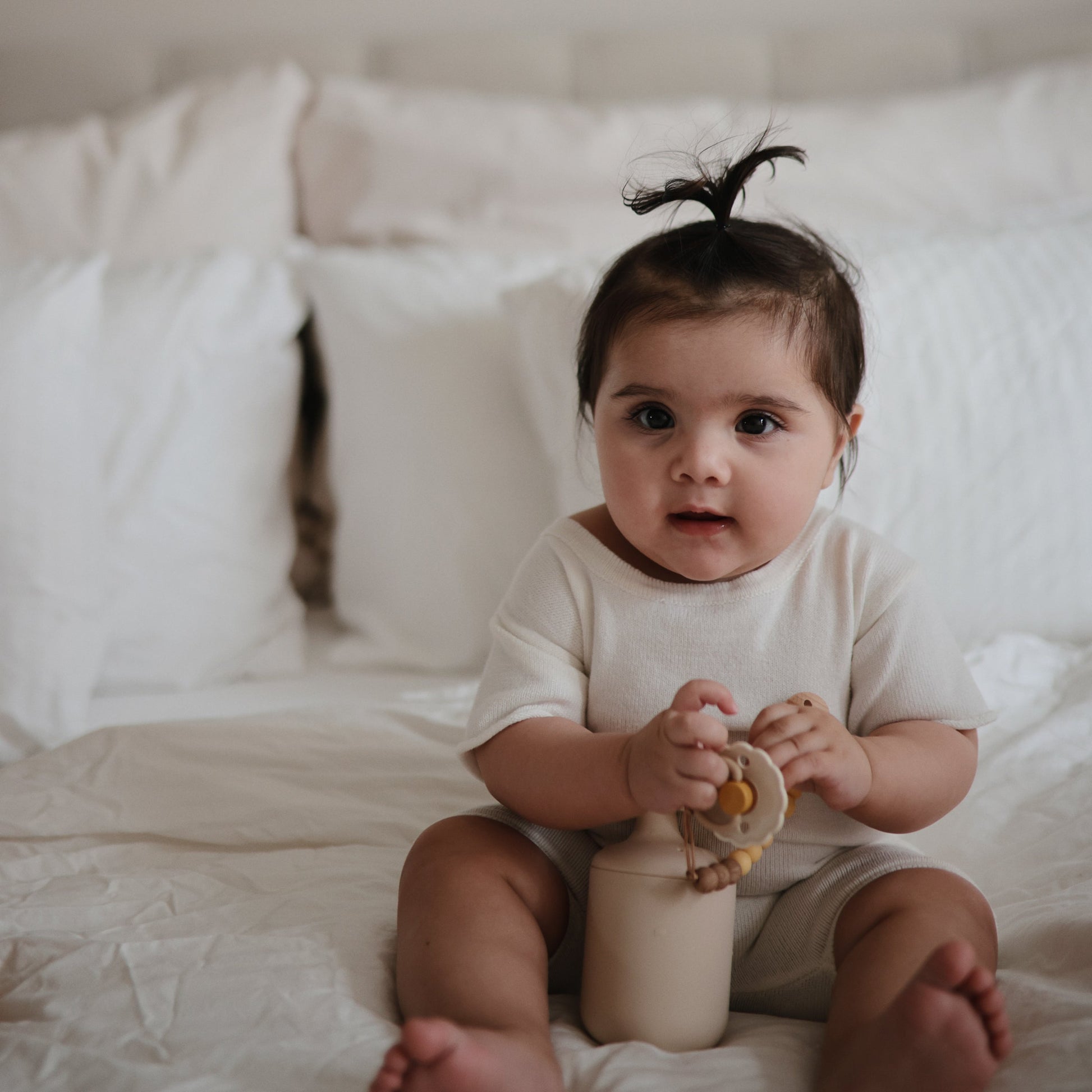 FRIGG silicone pacifiers are thoughtfully designed and made in Denmark for your baby's comfort and safety with an improved SilkySoft™ medical grade silicone nipple and patented Click-Lock® system. The outward curve keeps the pacifier off baby's delicate skin, while air holes and a security handle give parents extra peace of mind. The set includes a variety of four pacifiers in a curated palette—perfect for rotating through the week or gifting to a new parent.
