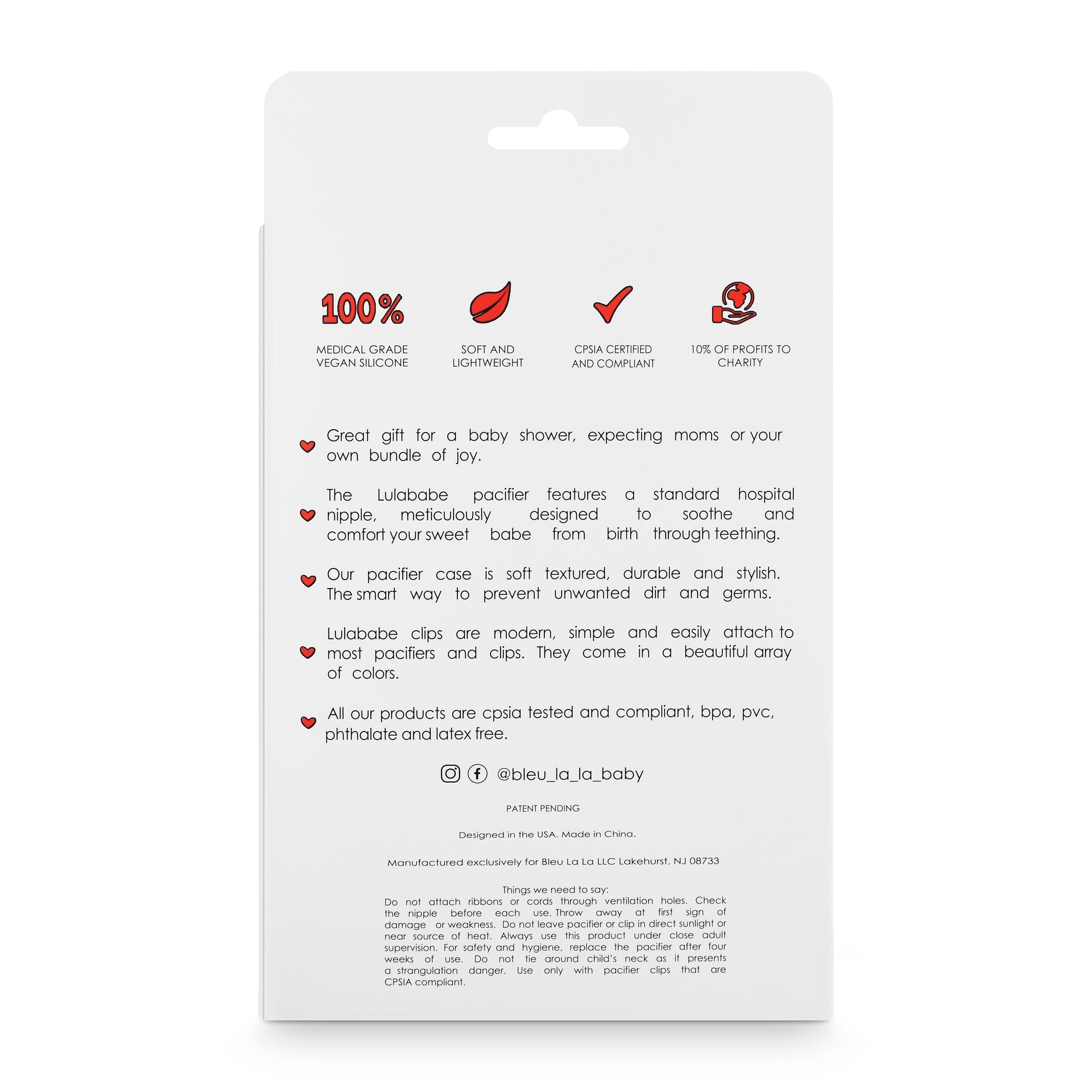 Lulababe Stage I Pacifier: Tailored for babies 0-12 months, the Bleu La La Lulababe Pacifier is an adorable, durable, and dependable accessory, ensuring your precious little one experiences both comfort and cuteness. Meticulously designed to soothe and accompany your sweet babe from birth through teething.