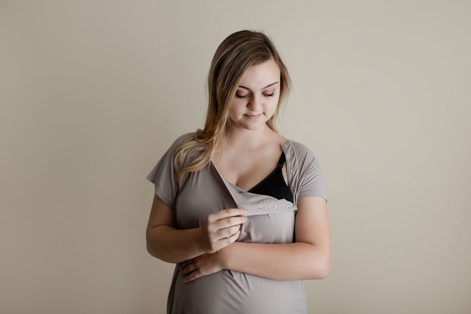 The buttery soft fabric stretches as a comfortable nightgown option for your growing belly at every stage. The easy-to-use snaps on the shoulder make it easy to breastfeed in the middle of the night. Honestly, you might never wear anything else as they are just that comfy!