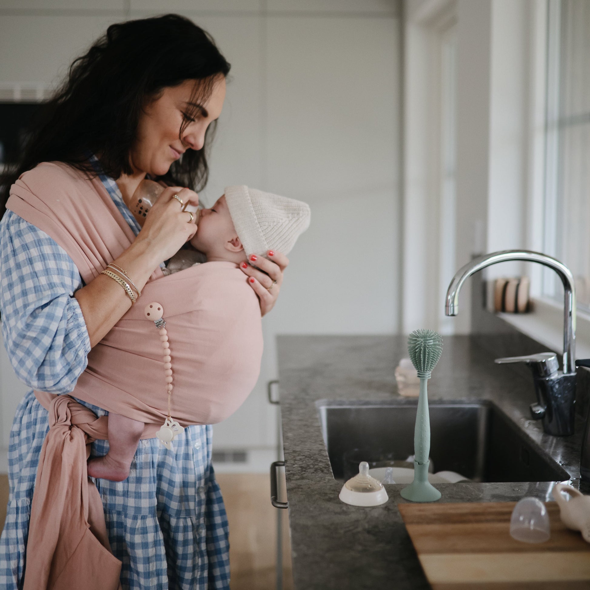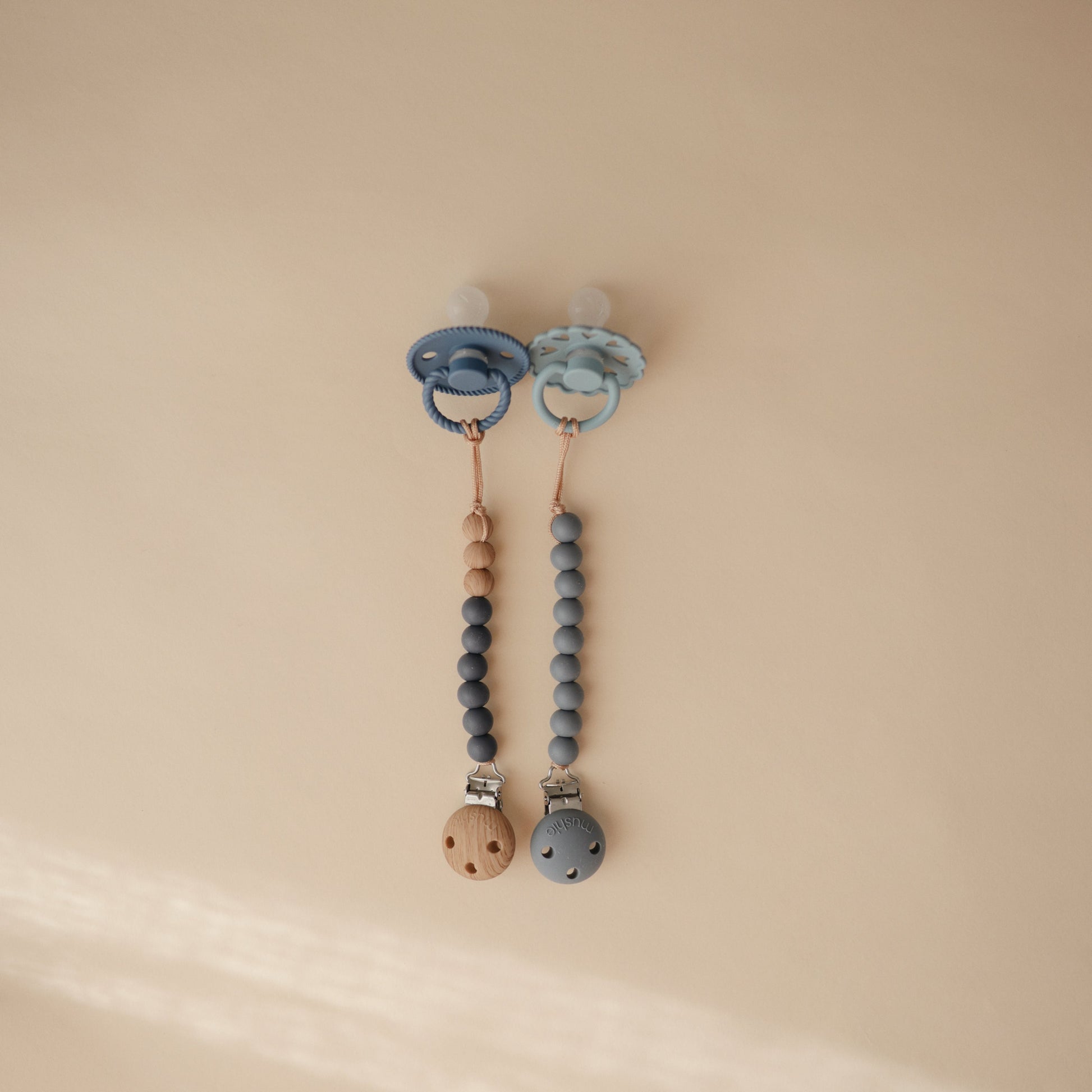 The Mushie silicone pacifier clip offers durability, function and simplicity to families on-the-go. Made from 100% food-grade silicone, our clip features a silicone clasp that brings a modern take to a traditional favorite. With a single color stack of silicone beads, the Hera clip offers families a beautiful accessory in a minimalist design. The clip is easy to clean and helps keep soothing items in reach for little ones.