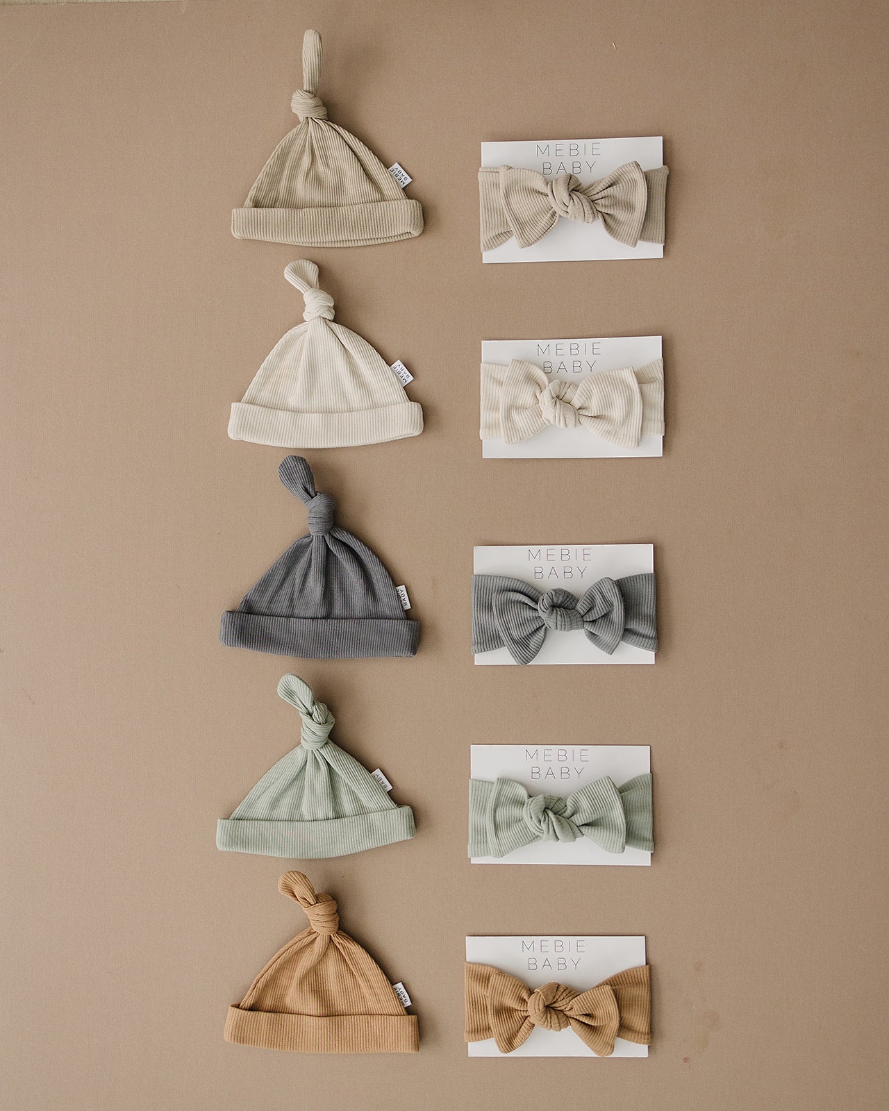 Introducing the Mebie Baby Organic Knot Hats, the ideal accessory for your new bundle of joy. Crafted from luxurious organic cotton, these hats are designed to keep your little one warm and cozy. Available in a range of gender-neutral colors, they perfectly complement our Organic Ribbed Gowns and Zipper One-Pieces. The softness of the fabric ensures maximum comfort for your baby, while the timeless design allows for easy passing down from one baby to another. Elevate your newborn's wardrobe with these essential knot hats.
