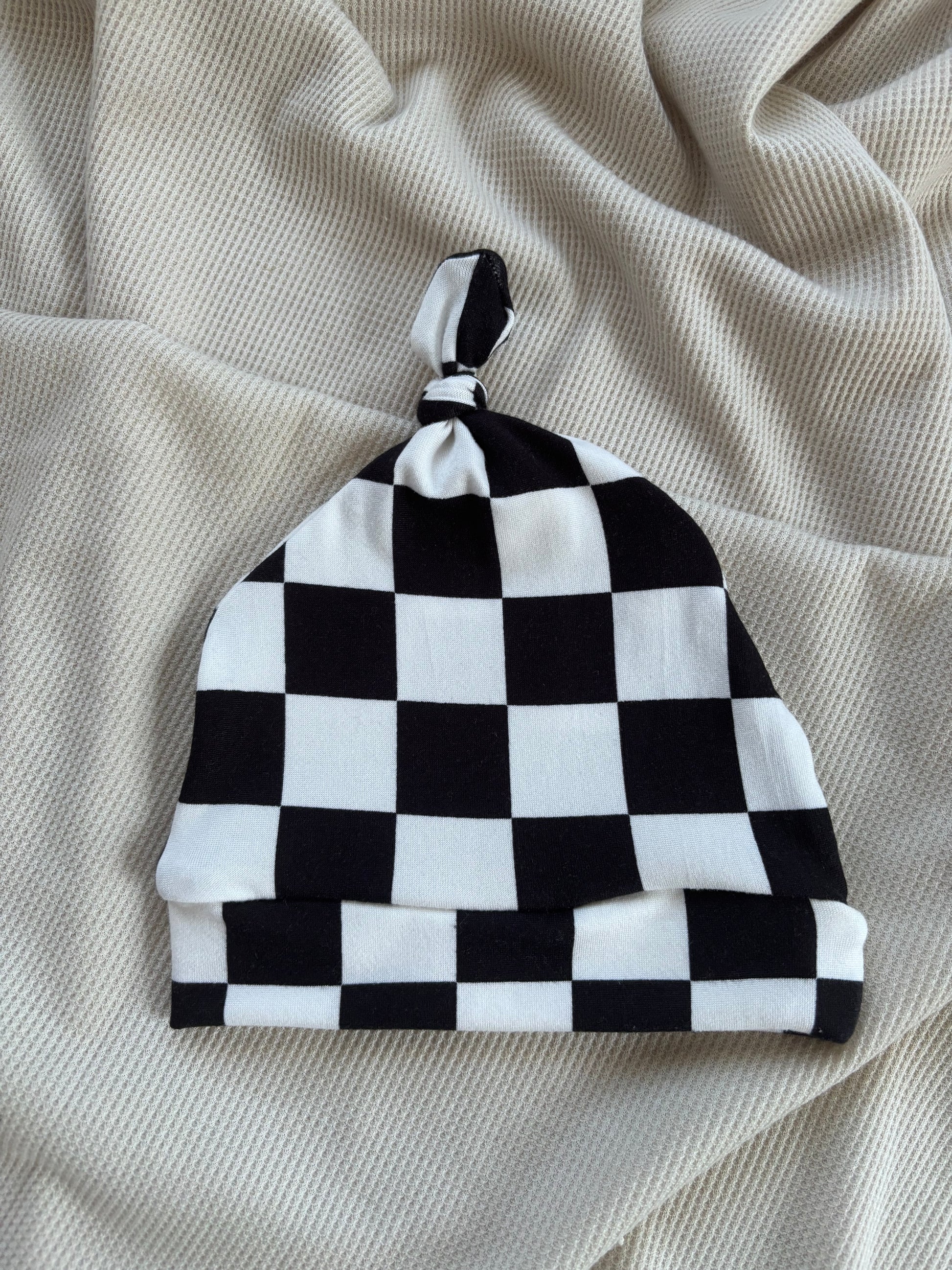 Our Race Black Knotted Baby Hat is perfect for your little one. From the moment they come into this world, comfort them with love, softness and a little stretch. Our knotted hat will keep them warm but not overheated from the first day. Stay in style with this staple piece for each and everyday use that also goes perfectly with our Woven Deluxe Muslin Blanket.