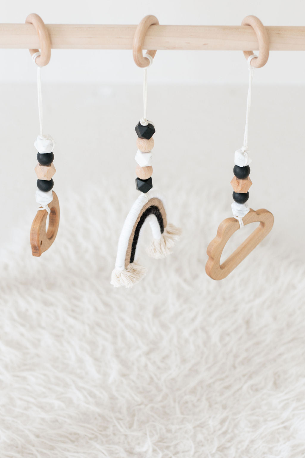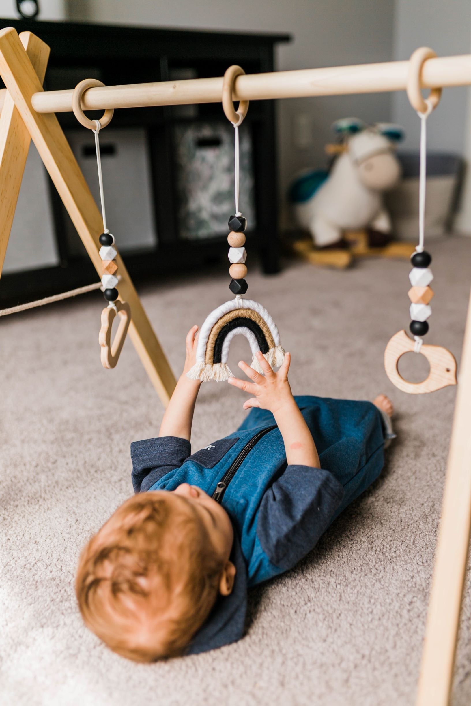 This heirloom-quality play gym is thoughtfully designed to delight your little one and provide hours of sensory-rich play, while looking beautiful in your home. Each gym is lovingly handmade in Pennsylvania by a husband-and-wife team, with a commitment to safety, craftsmanship, and creativity.