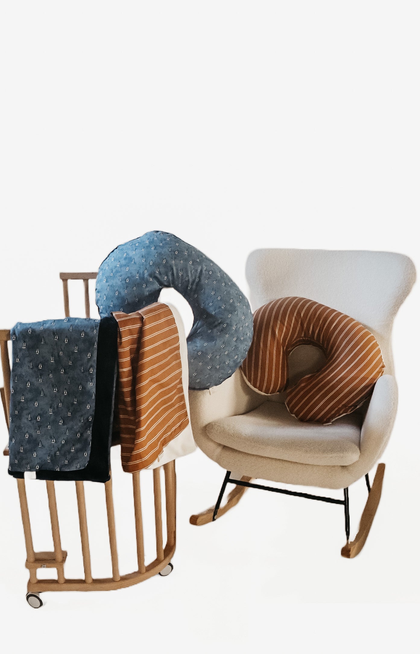Our Sailboat Nursing Pillow Cover is designed to fit perfectly on your pillow for feeding / tummy time.
