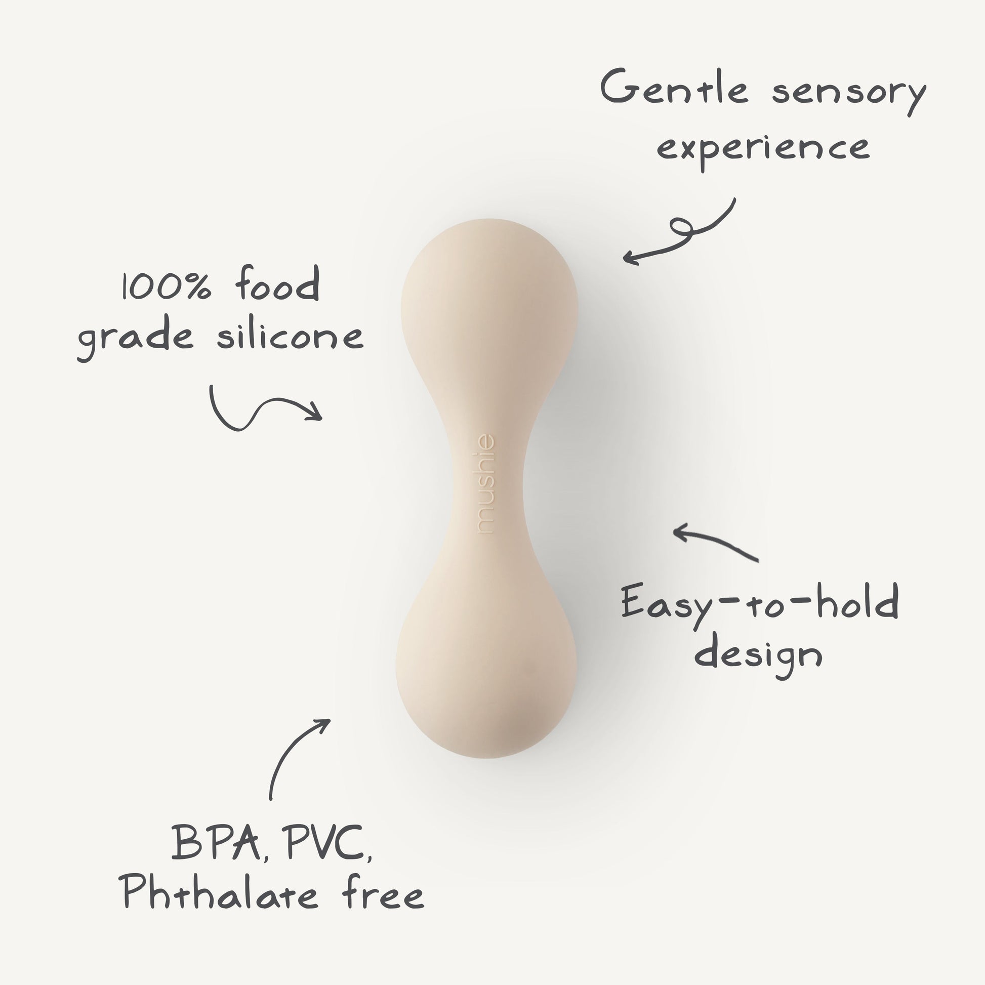 Make playtime more engaging with our Silicone Baby Rattle that offers a gentle sensory experience for little ones. Perfectly sized for tiny hands, babies will benefit from its easy-to-hold design as they explore the world around them. With an exterior made from 100% food grade silicone, parents appreciate the safe materials, modern design and soft sounds.