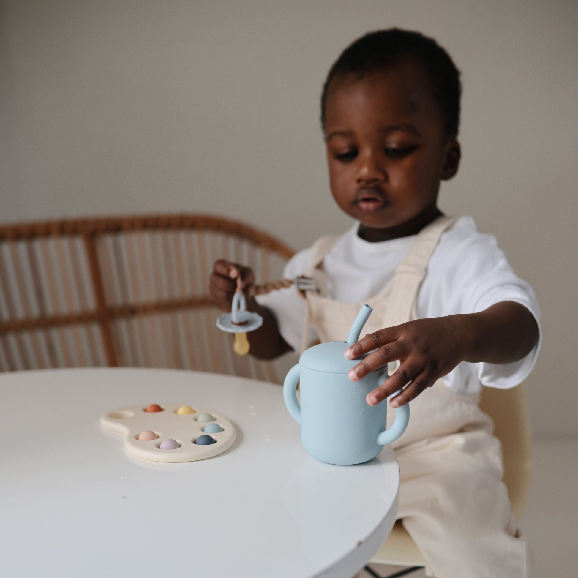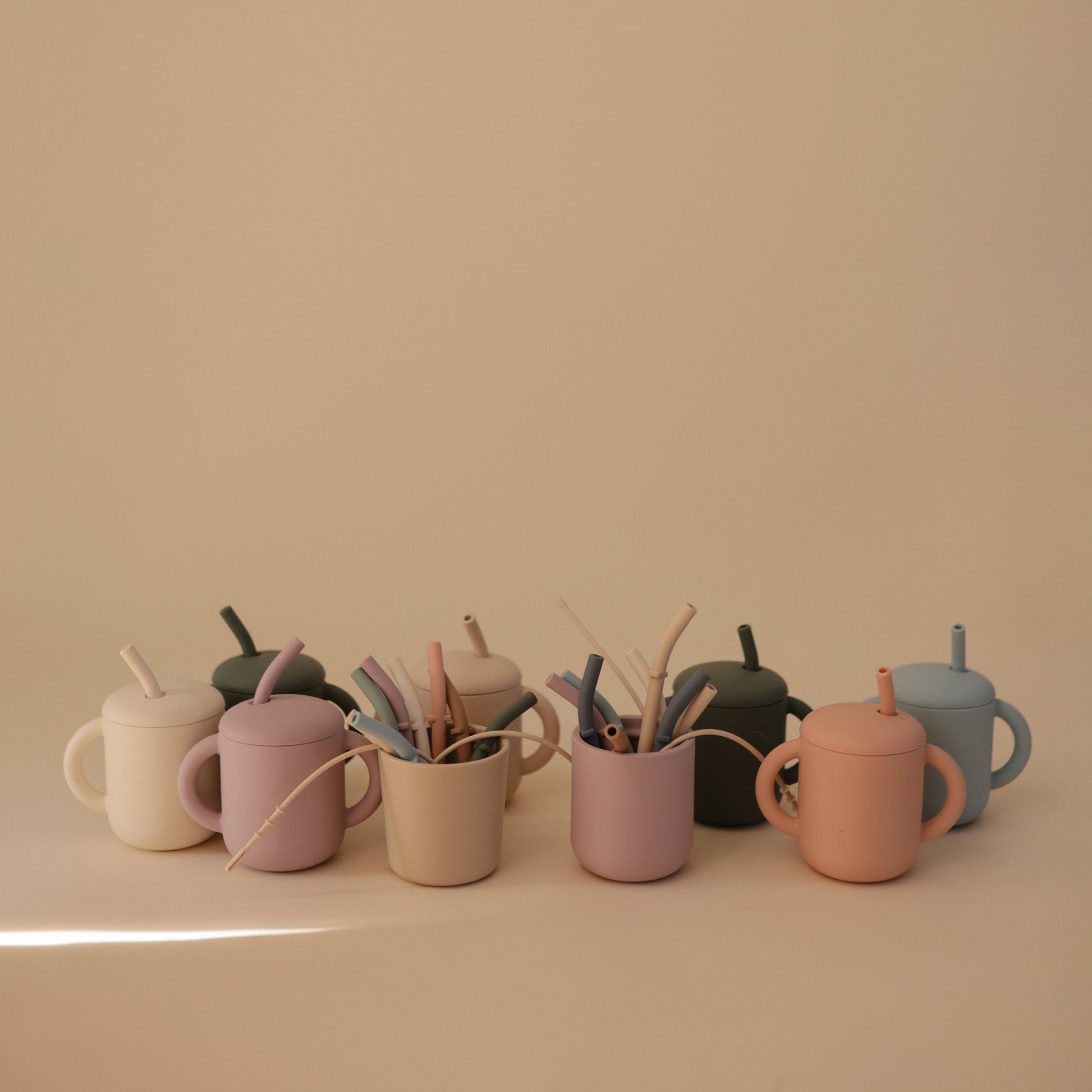 This set of 5 silicone replacement straws is designed specifically for the Mushie silicone training cup, offering a convenient, reusable and safe drinking solution for littles. Made from non-toxic, food-grade silicone, the straws are gentle on gums and emerging teeth. A silicone cleaning brush perfectly sized for the straws makes it easy to keep them hygienic and ready for use. Each set includes 5 different color straws.