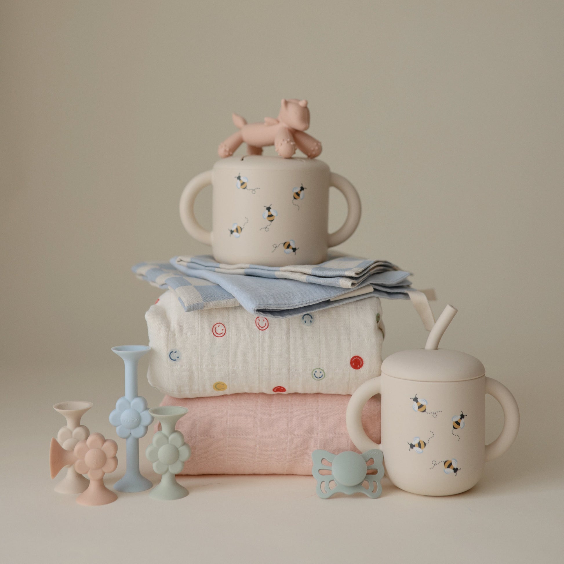 Put a lid on spills and messes with a sophisticated training cup designed for little hands and beautiful homes. Made from 100% food grade silicone, this minimal cup comes with a removable lid and a gentle straw for baby gums and toddler teeth. Build up fine motor skills and start young feeders on their transition journey from bottle to cup.
