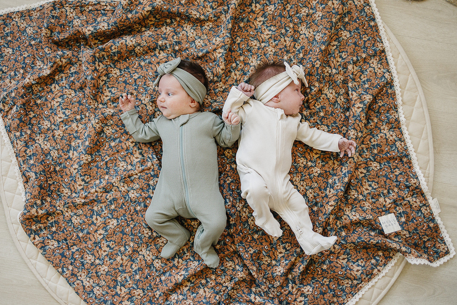 Check out our new Lace Edges on our popular Muslin Quilt with the pattern Venetian Floral + Autumn Bloom. Crafted from the same fabric as our beloved muslin swaddles, this four-layer quilt offers warmth and softness for a restful sleep. Our neutral colors add a touch of elegance to any nursery or bedroom. Not only is this quilt perfect for keeping your baby snug, but it also becomes even softer with each wash, ensuring lasting comfort. Embrace the beauty and functionality of our muslin quilt, a must-have for both babies and toddlers.