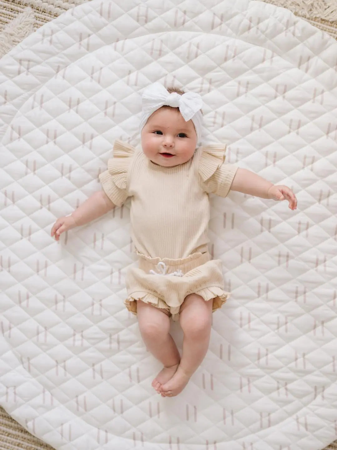 The Padded Play Mat included in the set is crafted with triple layer cushioning, offering a soft and supportive surface for tummy time, rolling, and early crawling activities. Its ample size provides plenty of space for your baby's movements and growth, while the diamond-quilted stitching ensures long-lasting durability. The soft, breathable fabric is gentle on delicate skin, creating a comfortable and safe play area for your little one.